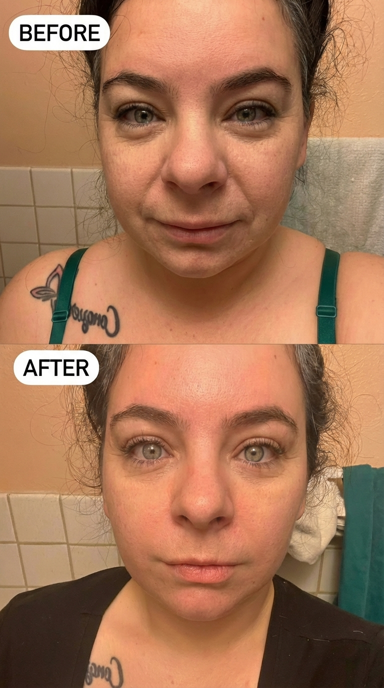 "I did not tell my hubby that I was doing this and after about 3 weeks of using it on my face/neck everyday he started randomly commenting on my skin. He started to ask what I was doing differently because my skin looked "really even" and he started telling me I looked 5 years younger"